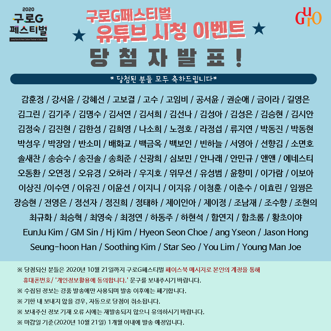 [2020] ±¸·ÎGÆä½ºÆ¼¹ú À¯Æ©ºê ½Ãû À̺¥Æ® ´ç÷ÀÚ ¹ßÇ¥!